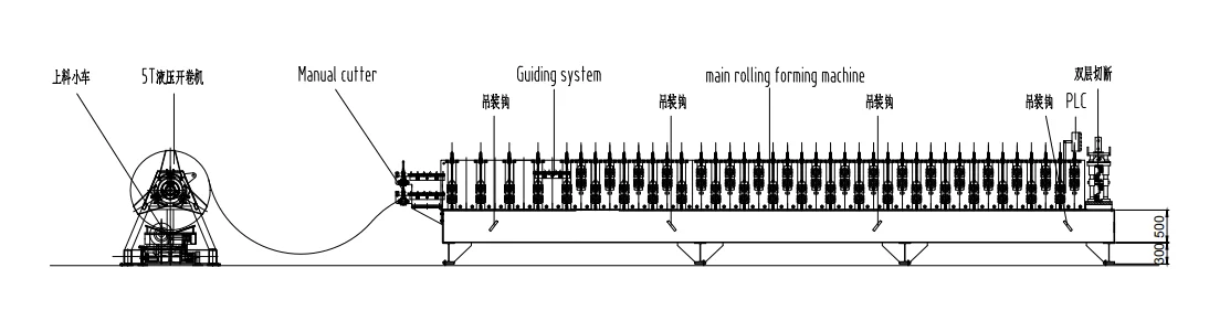 Uncoiling ← تغذية المواد في الآلة ← تشكيل اللف ← القطع التلقائي ← جدول استلام المنتجات