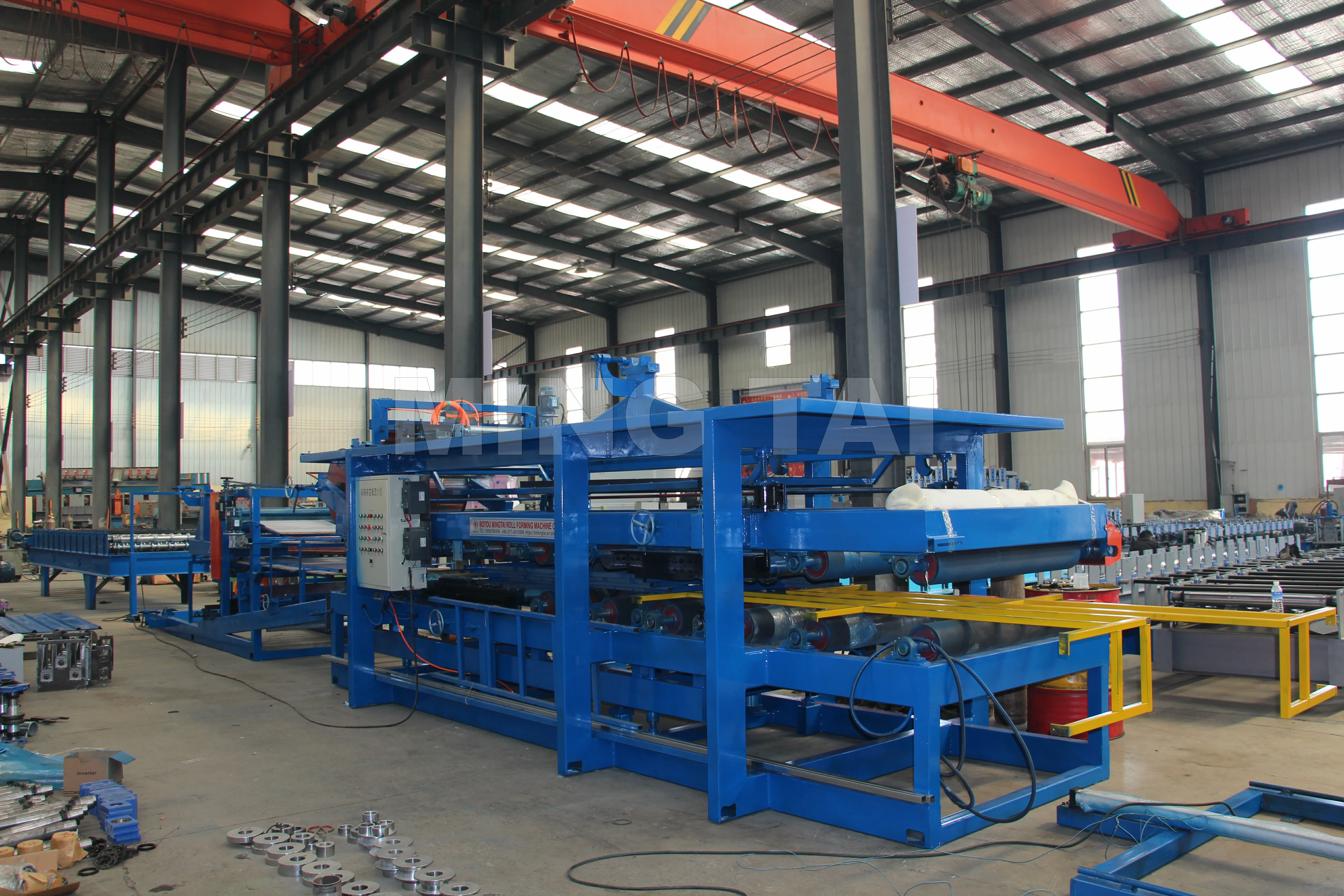 สายการผลิตแผงฉนวนแซนวิช PU-PIR-EPS แบบต่อเนื่องคือการตั้งค่าการผลิตขั้นสูงที่ออกแบบมาเพื่อผลิตแผงแซนวิชแบบต่อเนื่องที่ใช้ในการสร้างฉนวนอาคารและการใช้งานในการก่อสร้าง สายการผลิตเหล่านี้มีการติดตั้งเครื่องจักรและกระบวนการเฉพาะสำหรับการสร้างแผงที่ประกอบด้วยวัสดุฉนวนแกนกลาง เช่น โพลียูรีเทน (PU) โพลีไอโซไซยานูเรต (PIR) หรือโพลีสไตรีนขยายตัว (EPS) ประกบอยู่ระหว่างโลหะหรือวัสดุหันหน้าอื่นๆ