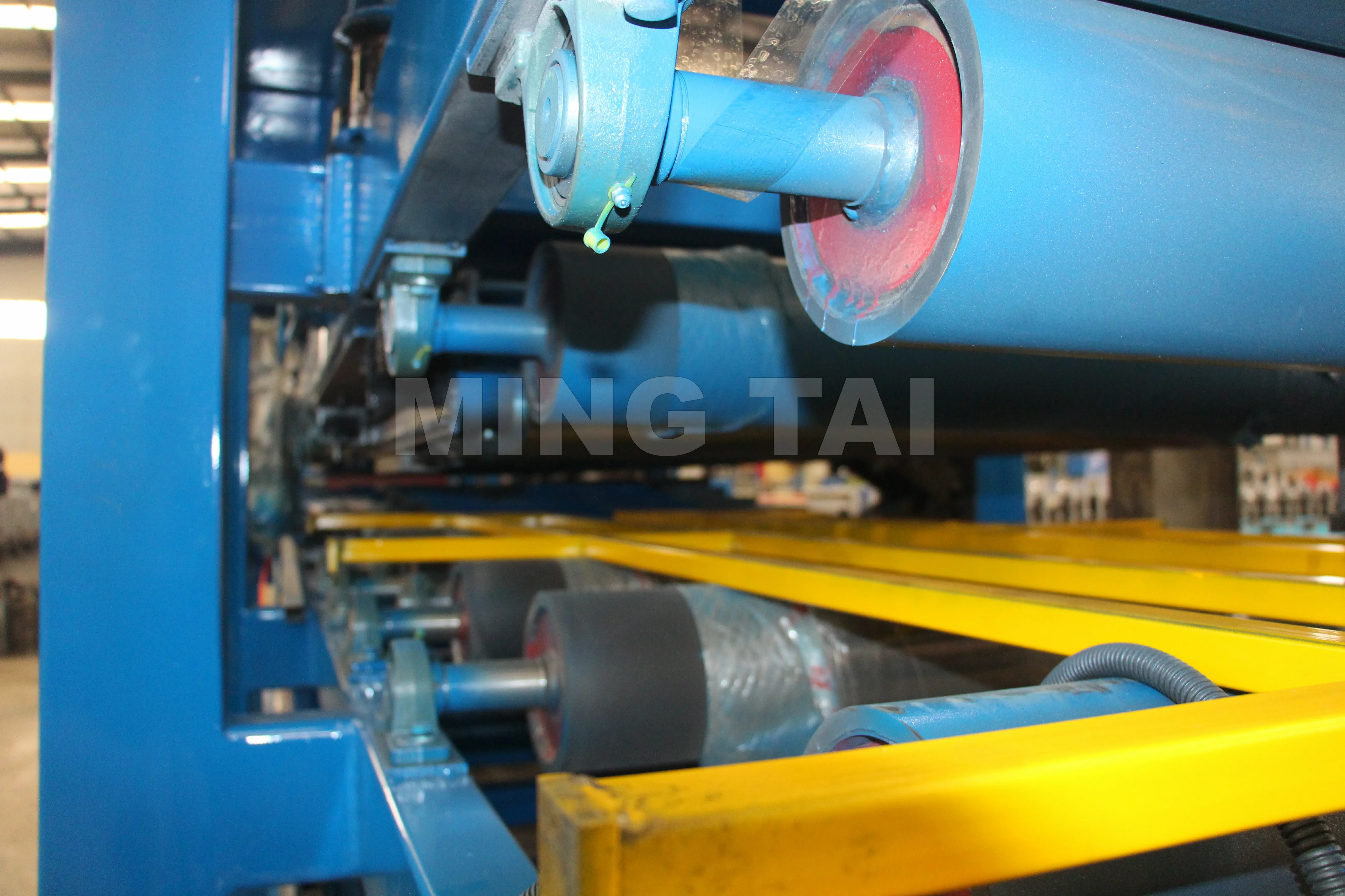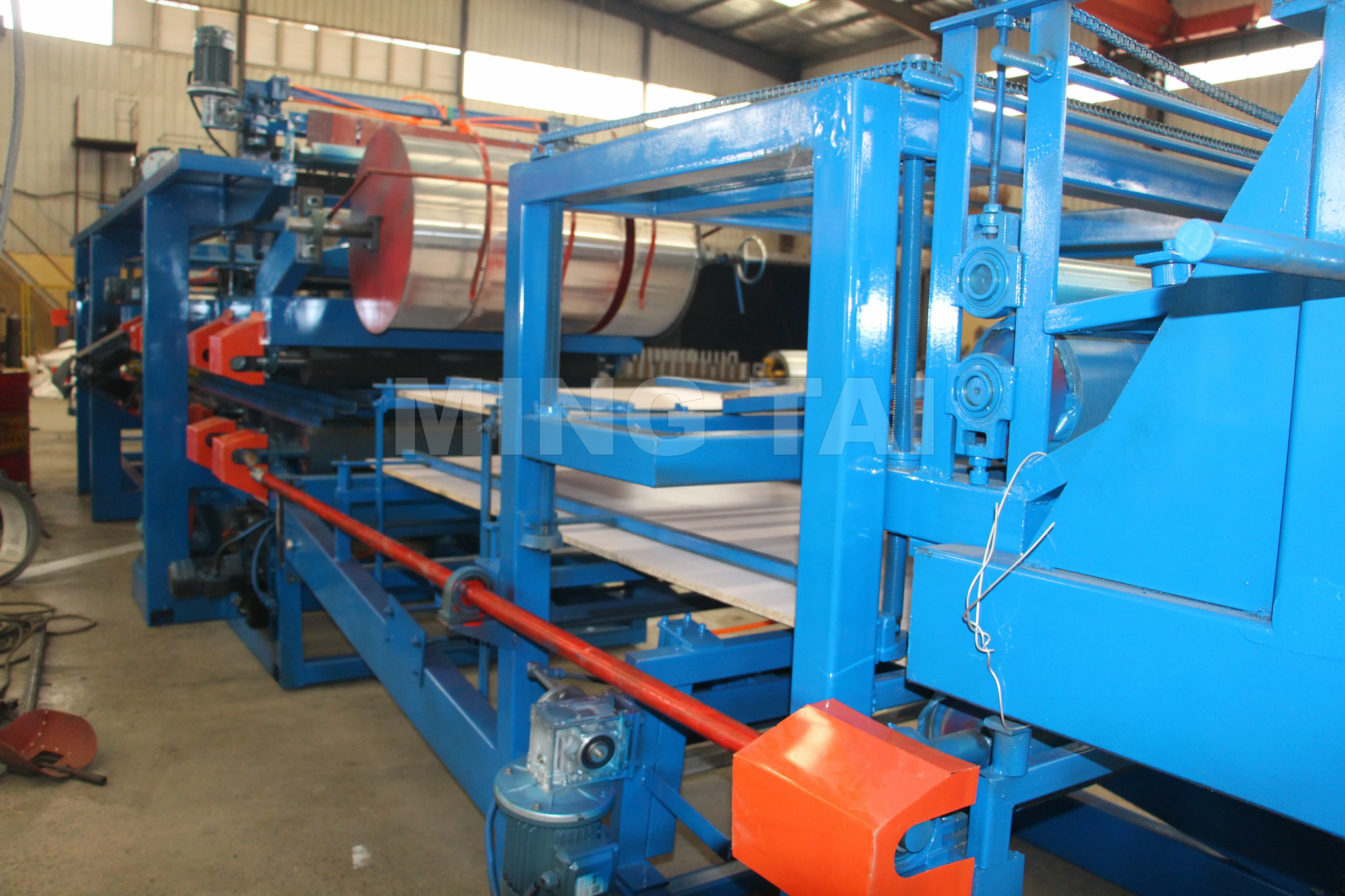 การป้อนและการขึ้นรูป: สายการผลิตแบบต่อเนื่องป้อนและสร้างรูปร่างขดลวดโลหะและวัสดุฉนวนผ่านลูกกลิ้งและเครื่องอัด จากนั้นขึ้นรูปเป็นโครงสร้างแซนวิชแบบต่อเนื่อง